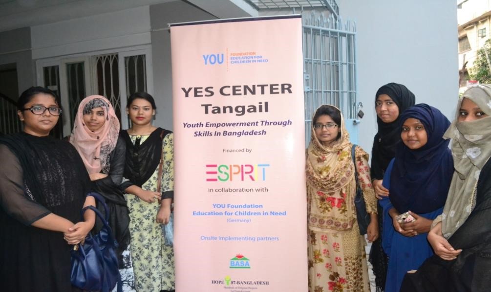 achieving The project was started in May 2018 in both Tangail and Dhaka and completed on 30th April 2020. For the aim of the project, the YES Centre is providing seven types of separate trainings such as ICT (computer) training, graphic design, proficiency in English, industrial sewing machine operator, fashion design and tailoring, beauty-cosmetics and wellness and hotel management course to 525 youths in order to improve their technical and managerial knowledge skills and to support decent employment. A total number of 525 youths will also receive life skills training. Among them 80% will be female participants. The project will also arrange the advocacy campaign for ensuring employment opportunities and to support female participation in economic activities. Besides this, several initiatives like a round-table meeting and a job fair will further contribute to ensure the entrance of trainees into the job market. A total of 525 youth were registered both in Tangail and in Dhaka, who wanted to participate in the classes. Among them 434 youth were selected for participating in 6 management training. During the project period, 434 students participated in 6 management skills development trainings. 434 successful students of 6 management skills training received certificates. From the beginning of the project 150 students received healthcare support right and needed medication was provided together with doctor’s prescriptions as well as other general medical treatment was offered once a week by the HOPE’87-Bangladesh Weekly Health Camp. Two blogger groups, each made up of 46 YES Tangail trainees, were trained and motivated. In June 2019, the "YES-Tangail Youth Group" launched an online blog. Bloggers published some blogs over the project's duration. Furthermore, 520 school students of secondary schools in Dhaka received Disaster Risk Reduction training, among them 182 were male and 338 were female. YES Center Tangail also organized a simulation session on disaster risk reduction for 308 students among them 131 were male and 177 were female and youths in collaboration with the Fire Brigade and Civil Defense Force of Tangail. A total of 434 youths also received life skills development training in both YES Center Dhaka and YES Center Tangail. Among the total number of students 347 were female and 87 were male. And also a total of 96 youths also participated in Entrepreneurship Development training courses during the project period. Among them 77 were female and 19 were male.